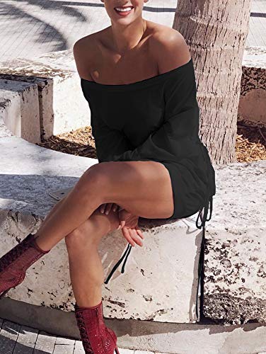 Specification: GOKATOSAU Women’s Sexy Casual Off Shoulder Long Sleeve Lace Up Loose Club Mini Dress